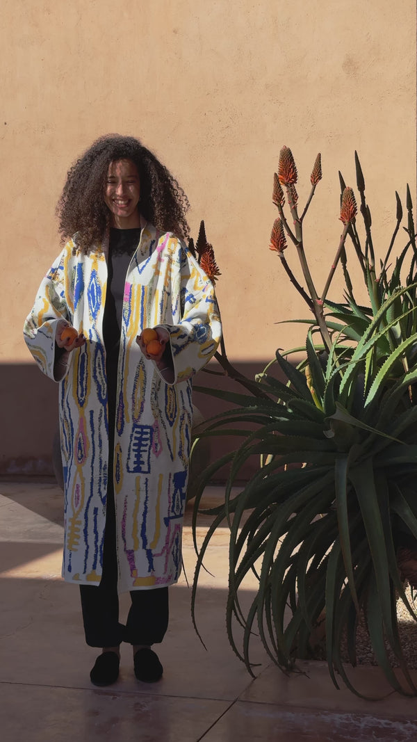 Daria’s journey, and the evolution of her eponymous brand Zalivako, started when she discovered the outstanding creations of the Berber women during a voyage to Morocco. As an architect, the designs captured her attention and inspired her to portray her universe via patterns. Her love for colours and the meanings behind them led her to start off with a collection of one-of-a-kind cardigans.