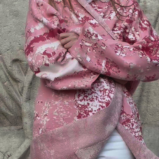Hand-knitted on Japanese looms using premium Italian cotton yarns in pink, baby pink, pale pink, nude, and white tones.